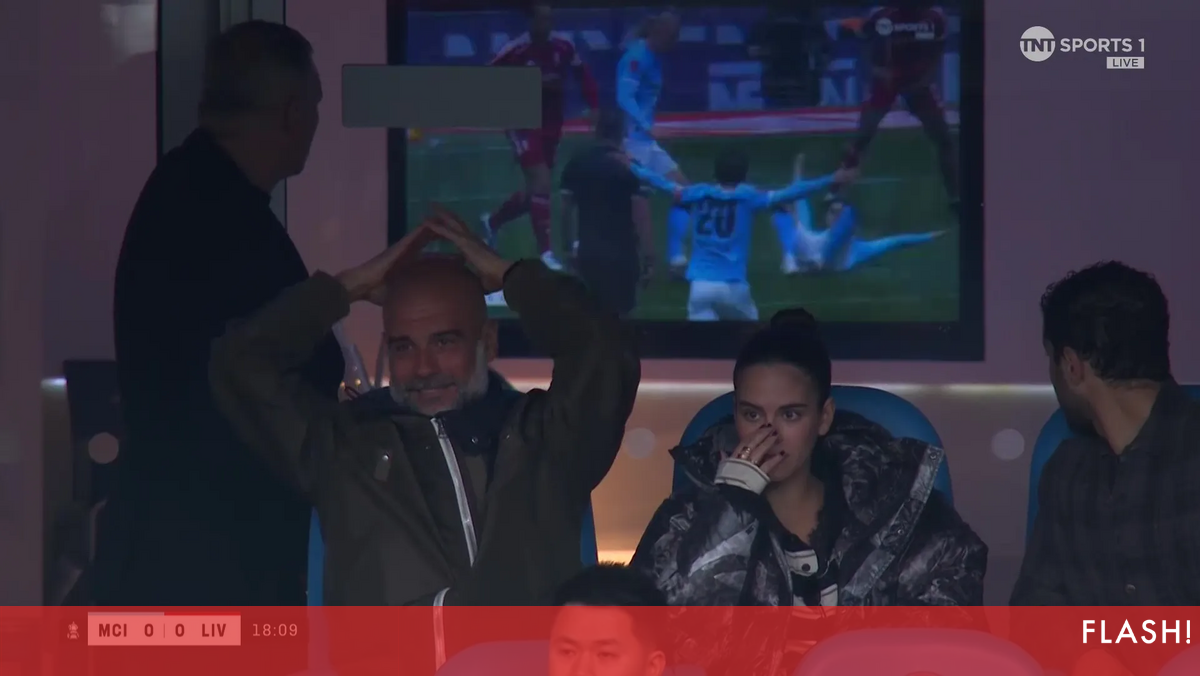 Suspenso por dois jogos, Pep Guardiola não pôde estar para o jogo dos quartos de final da Taça de Inglaterra contra o Liverpool e foi fotografado na bancada VIP, onde contou com o apoio da filha Maria, que acabou por roubar o protagonismo ao pai.