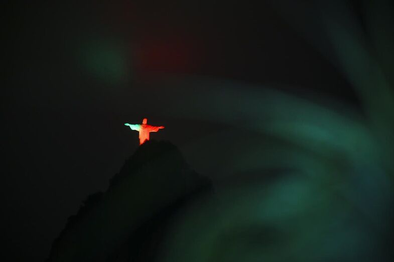 A estátua do Cristo Redentor, no Rio de Janeiro, foi ontem iluminada durante cerca de trinta minutos com as cores nacionais de Portugal por ocasião da visita do Presidente da República, Marcelo Rebelo de Sousa