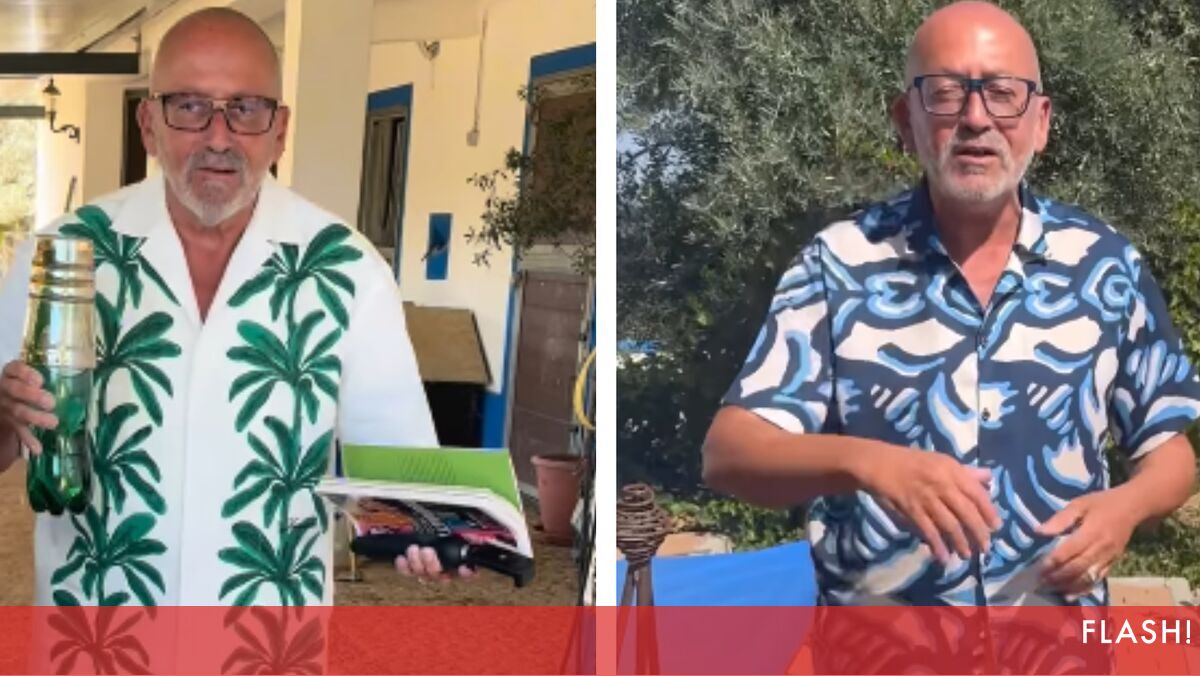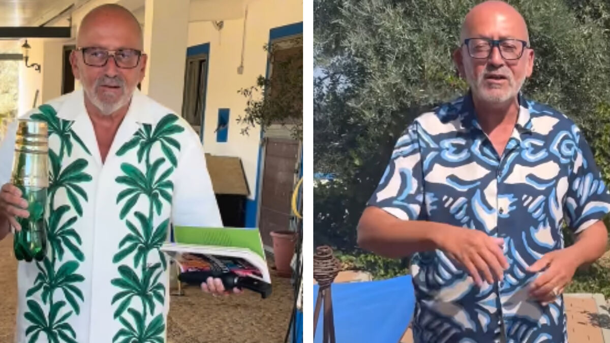 Calças brancas, camisa branca com estampado de palmeiras e com uma garrafa de água e um livro na mão. Foi assim que Manuel Luís Goucha apareceu junto de Rui Oliveira para juntos seguirem para o campo para cuidar das vacas. Para este look do apresentador da TVI, o marido não resistiu em dizer: "Mas para onde é que tu vais?"