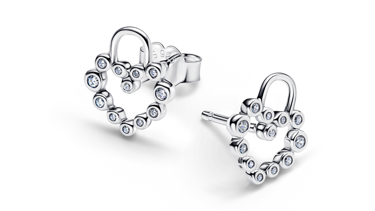Brincos Pandora com fecho em forma de coração em Prata 925 e zircónias, 49€