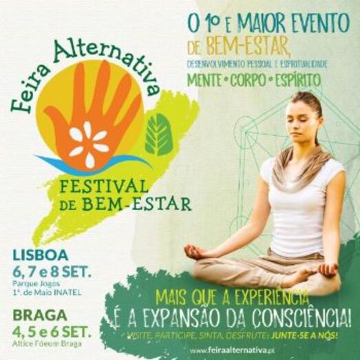 A Feira Alternativa Festival do Bem Estar volta nos dias 6, 7 e 8 de Setembro ao Parque de Jogos 1º de Maio, Inatel, Lisboa. Ao longo de 3 dias pode visitar o certame e aprofundar o seu conhecimento em mais de 150 atividades que incluem palestras com oradores internacionais, workshops variados e aulas práticas. Haverá ainda cerca de 200 expositores de terapias complementares.À semelhança dos anos anteriores, o programa de 2019 está recheado de excelentes palestras. Marcarão presença o Prof. Carlos Orozco, cientista de biologia e bioquímica e especialista em epigenética, assim como Marco Marcondes, médico nutrólogo, Cátia Simionato, a Xamã Anna Xára e muitos outros palestrantes nacionais.No sábado à tarde pode participar na construção da maior Mandala Humana feita em Portugal, ou fazer uma sessão de Heart Chakra Meditation, uma dança meditativa de Osho.No último dia, a Feira Alternativa pretende bater o record do Guinness do maior número de reflexologistas a praticar reflexologia com os seus pacientes.A Feira Alternativa Festival do Bem Estar segue para Braga onde irá acontecer em outubro.A entrada individual para a Feira custa 6€ e o passe de 3 dias fica por 10€; as crianças até aos 10 anos não pagam. Mais informações em www.feiraalternativa.pt.
