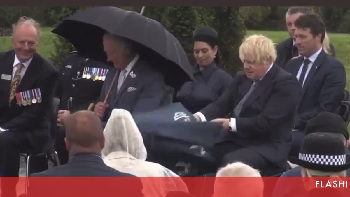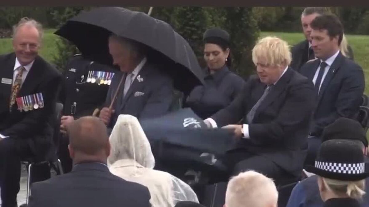 Insólito. Veja a luta do primeiro-ministro inglês Boris Johnson contra... um chapéu de chuva