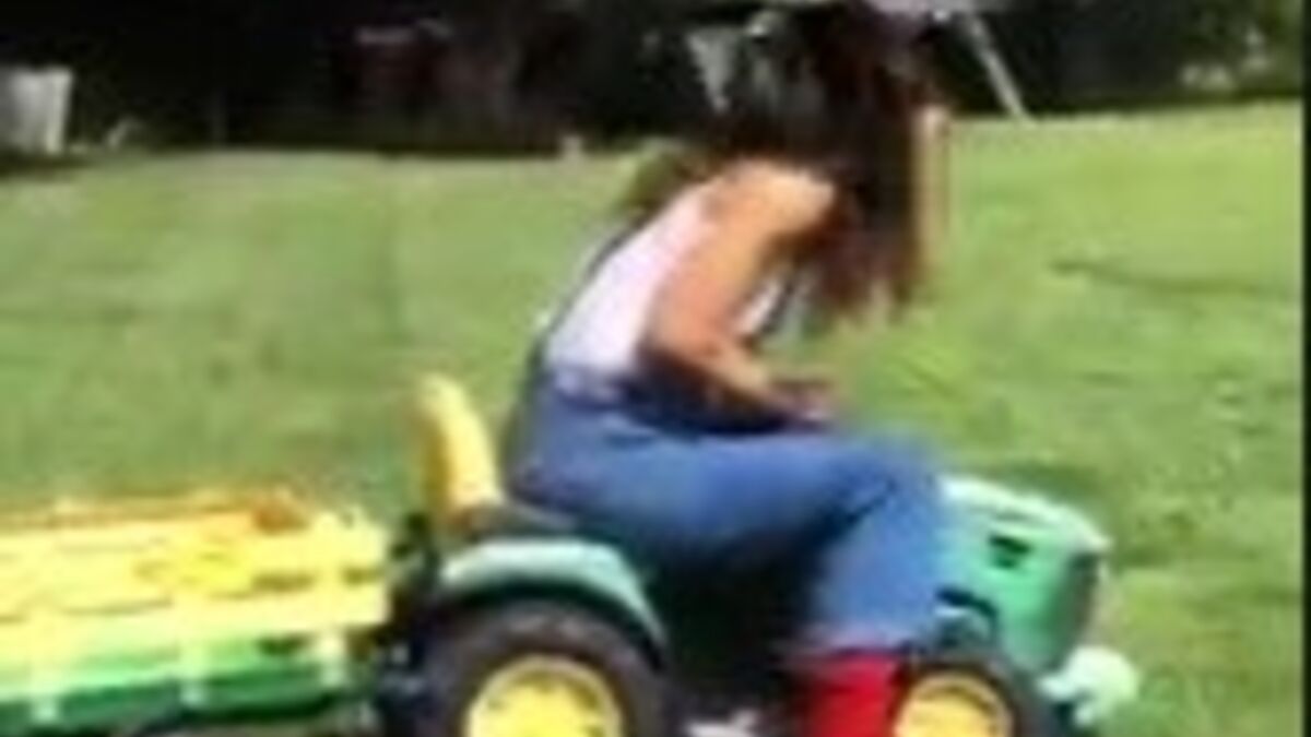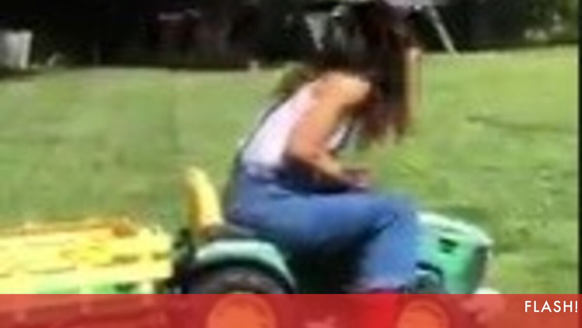 A atriz estava a fazer um video a transportar uma galinha num trator quando o animal se fartou e aterrou na sua cabeça. A atriz entrou em pânico