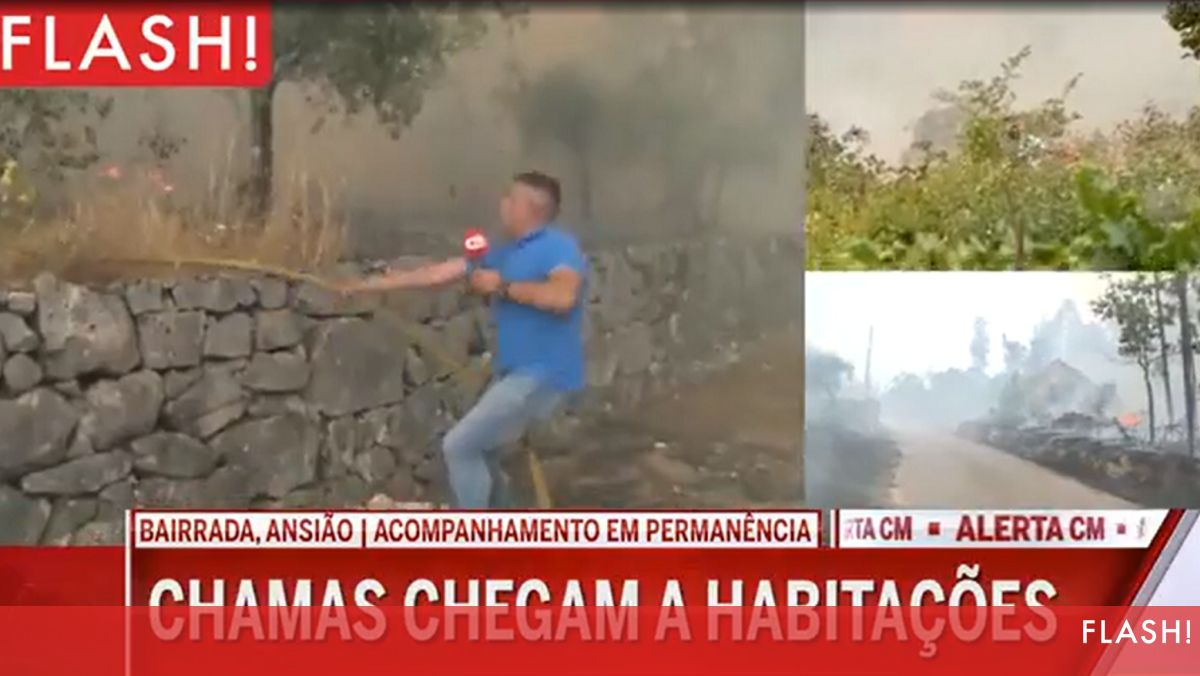 Alta tensão: repórter da CMTV ajuda a combater incêndio em direto