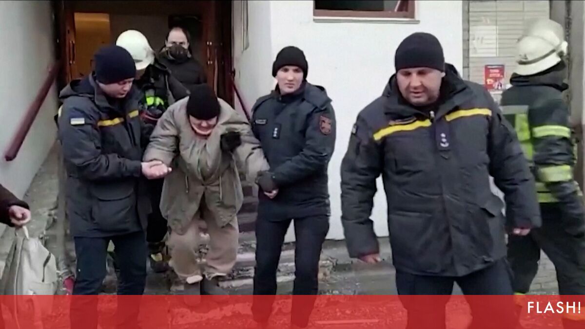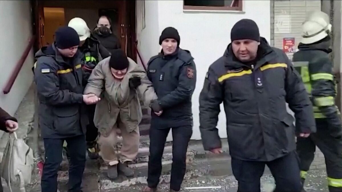 Moradores retirados de casa após prédio ser atingido por míssil em Kiev