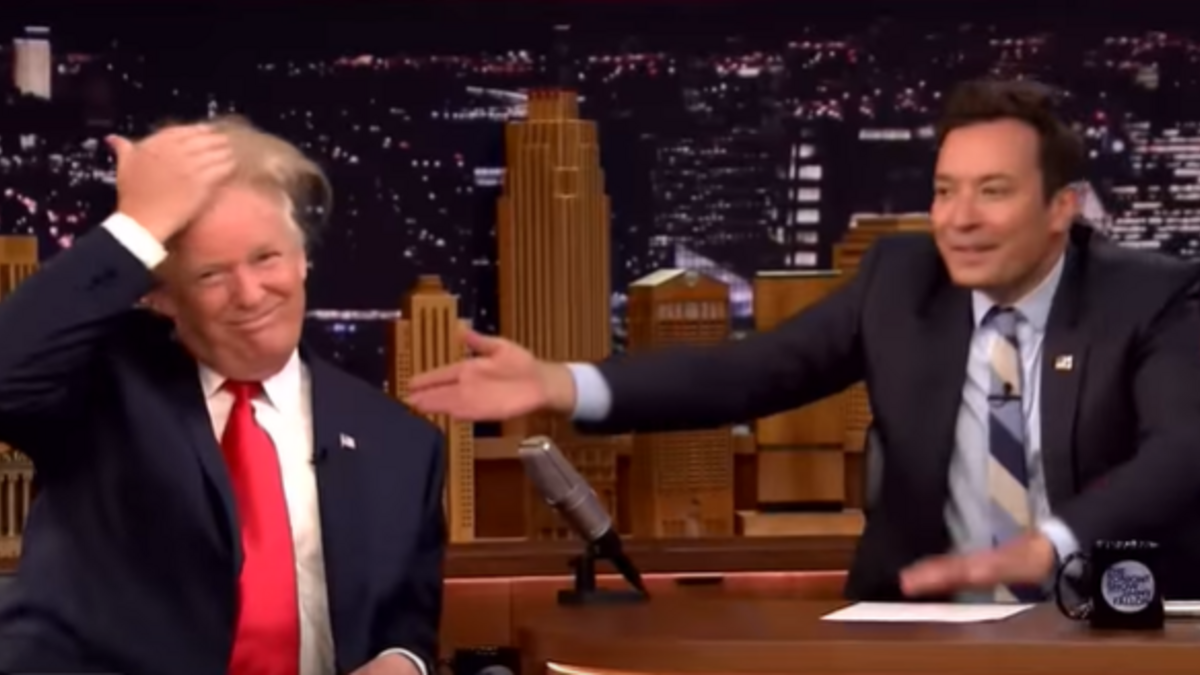 Então é mesmo careca? Recorde o momento em que Jimmy Fallon despenteou Donald Trump e o deixou... sem cabelo!