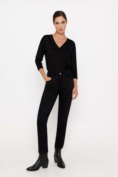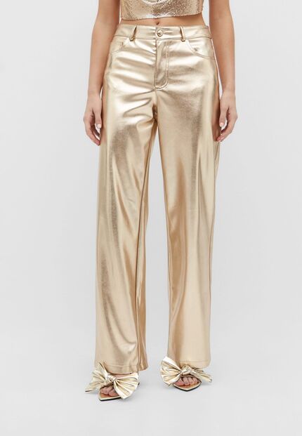 As calças acetinadas ou com apontamentos de brilho são sempre uma excelente opção para as noites de festa. Ficam lindamente em conjunto com uma camisa do mesmo material, com um top cheio de brilho, mas depois vão ganhar uma nova vida com as suas camisas mais básicas ou camisolas de malha descontraídas.
