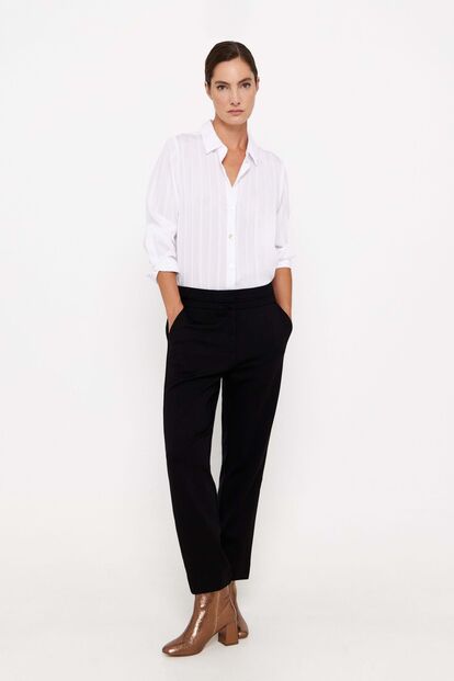 As calças de fato, ou mais formais, são tendência este ano e são um excelente exemplo daquilo que podemos usar em ocasiões mais formais, mas também em looks casuais. Se ainda não se sente preparada para escolhas mais arrojadas como lantejoulas ou calças metalizadas, estas calças são sempre uma ótima opção.