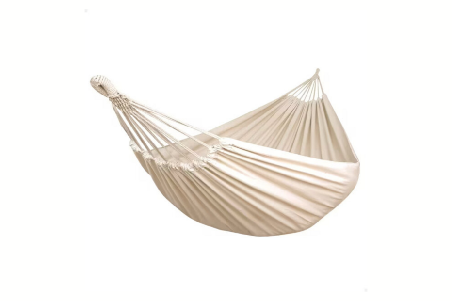 Simples, leve e confortável, esta rede é ideal para relaxar na natureza. Com capacidade para uma pessoa, é perfeita para uma sesta entre árvores ou para ler um livro com vista para o mar.