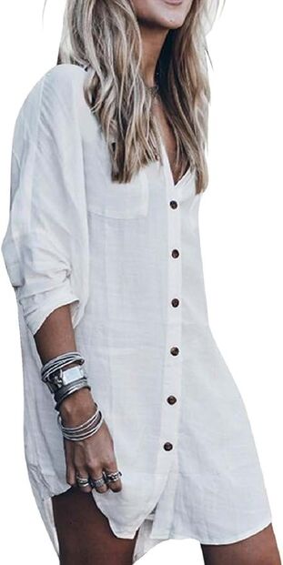 Este é o tipo de camisa que devemos ter sempre no nosso guarda-roupa. É solta, não marca o corpo, fica perfeita com os seus colares dourados e tanto pode ser usada com gangas como com um blazer para um look mais formal. Está disponível na Amazon e tem uma ótima relação qualidade-preço.