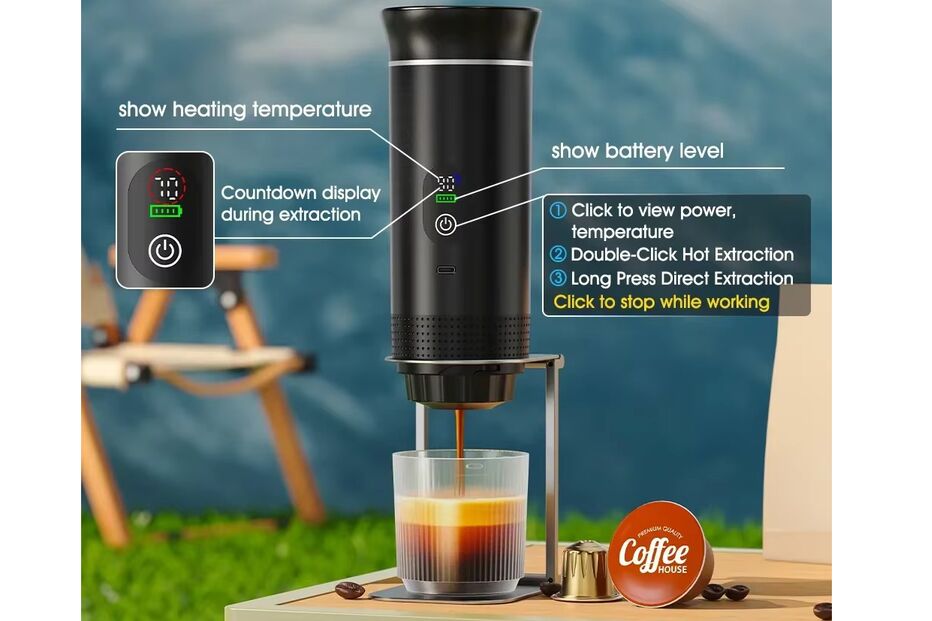 Quem é apaixonado por café, gosta de o poder beber em qualquer local, e daí terem surgido gadgets que transformam a forma como preparamos a nossa dose diária de cafeína. Esta máquina de café portátil representa essa nova geração de pequenos eletrodomésticos: compacta, recarregável via USB e compatível tanto com café moído como com cápsulas, esta mini-máquina permite tirar um expresso quente em qualquer lugar. Graças ao seu tamanho reduzido e à alimentação por USB, é especialmente útil para viagens, campismo ou simplesmente para ter no escritório sem ocupar muito espaço.