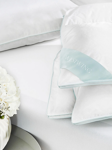 Este é o detalhe que faz toda a diferença, pois um bom edredão vai proporcionar-nos aquela sensação de acolhimento sem pesar. Este, feito de penas, é, na verdade, um edredão duplo, que pode adaptar às diferentes estações do ano. Com ele, vai sentir-se a dormir nas nuvens.
