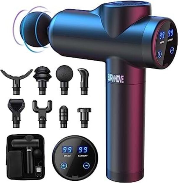 6. Pistola de massagem muscular da marca Burnnove, 99 velocidades e 8 cabeças de massagem