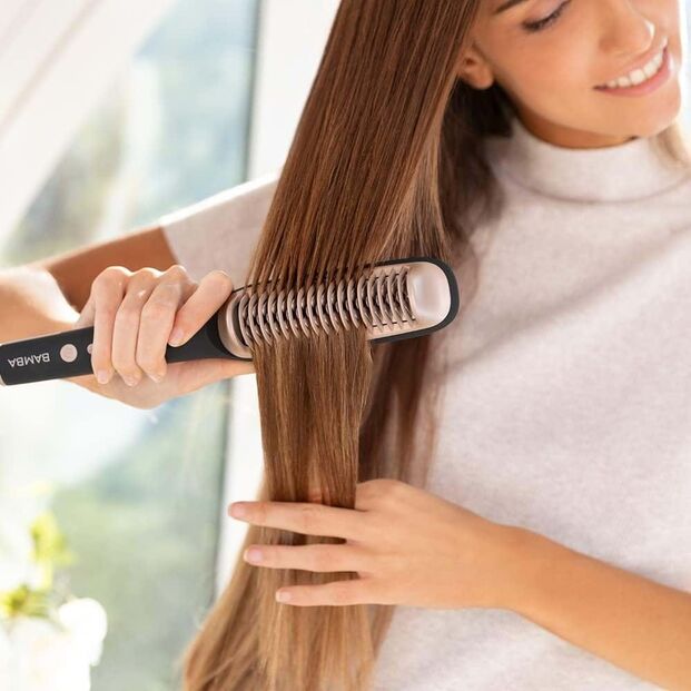 É outra das favoritas quando o assunto são as escovas alisadoras. Esta atinge uma temperatura de 220 graus em poucos segundos e garante total eficácia até nos cabelos mais crespos ou encaracolados. Com ecrã tátil e fácil de utilizar, desliga-se ao fim de 30 minutos para evitar esquecimentos.