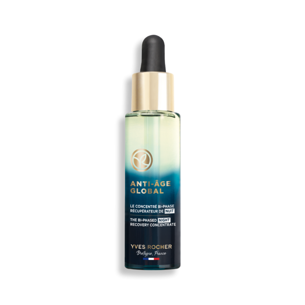 Concentrado Bifásico Recuperador de Noite Sabemos que a noite tem um papel fundamental na nossa pele e é nesta altura que a regeneração celular está altamente favorecida. Logo, é o momento certo para agir! Este sérum da Yves Rocher é específico para a noite. A sua fórmula bifásica combina um sérum duas vezes mais concentrado, para uma regeneração excecional da pele em apenas 72h. Coloque-o à noite antes do seu creme para um resultado global excecional.