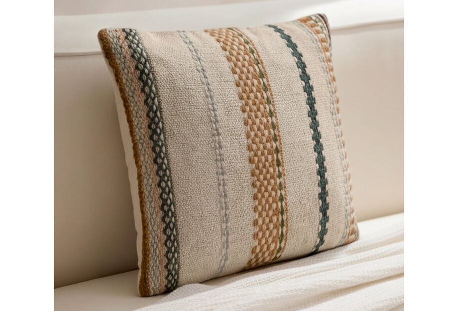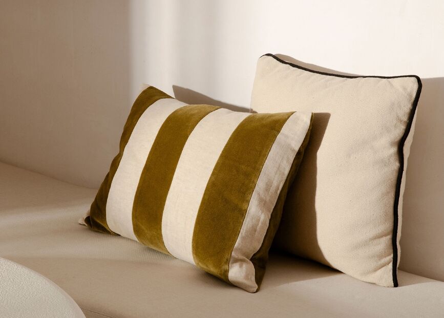 ver preçoJá para dar ritmo e leveza ao espaço, as riscas continuam a ser uma aposta segura. Esta almofada introduz um padrão discreto mas dinâmico, ideal para quebrar monotonia e dar um toque fresco à decoração. Combina facilmente com outras almofadas lisas ou texturizadas, criando composições interessantes sem esforço.