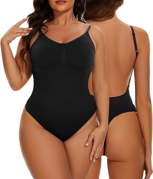 Se além de pretender um modelo que lhe deixe as costas livres para brilhar no seu vestido quer ainda conseguir um efeito modelador na zona da barriga, para que esta fique mais estilizada, este body, disponível na Amazon, pode ser a solução que procura.