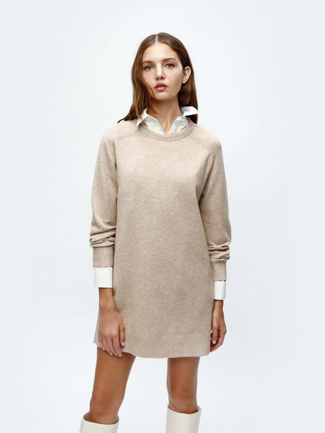 Tome nota, porque os vestidos de malha vieram para ficar e vão ser das peças mais vistas ao longo dos próximos meses. Dentro das várias opções, há os soltos e curtos, como este bege, que respira luxo silecioso e fica perfeito com as suas botas de cano alto.