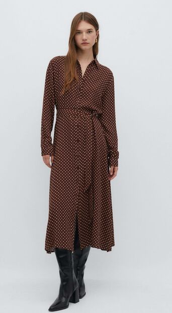 Dentro dos vestidos de malha, as tendência centra-se nos midi e nos modelos mais curtos. Gostamos especialmente deste, com aspeto ultra confortável, e que tem o pormenor do cinto a dar um toque de sofisticação ao conjunto.