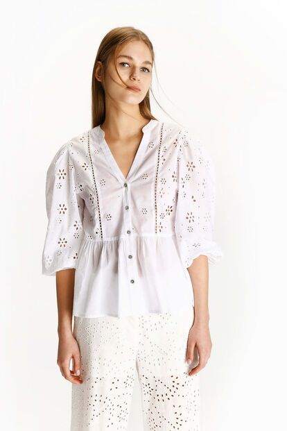 O branco é o tom de eleição para este tipo de camisas e blusas que querem-se com pormenores como bordados, golas, folharecos e outros que nos remetam para um estilo romântico. Perfeito para usar com jeans e com as suas sabrinas de eleição.