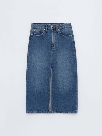 Estas saias entraram na moda na última estação e continuam a ser um must have na nova temporada. Esta da ganga é um daqueles modelos básicos fáceis de conjugar com qualquer peça e que está a um ótimo preço.
