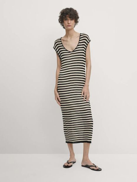E por falar em praia, estes vestidos de malha aberta são um must have para aqueles finais de tarde em que saímos com o fato de banho por baixo, mas ainda queremos petiscar e estar bem. Este, às riscas, da Massimo Dutti, é uma tentação.