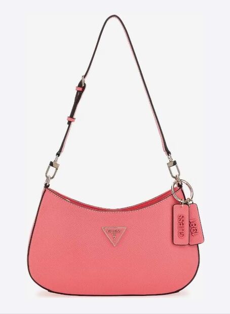 Mala ‘baguette’. Um modelo cada vez mais popular entre as influencers, pois acaba por ter o tamanho certo (aquele que se deixa transportar por baixo do braço) e é muito confortável. Uma boa escolha é o modelo ‘Noelle’ da Guess que se apresenta em oito cores diferentes. Na About You.