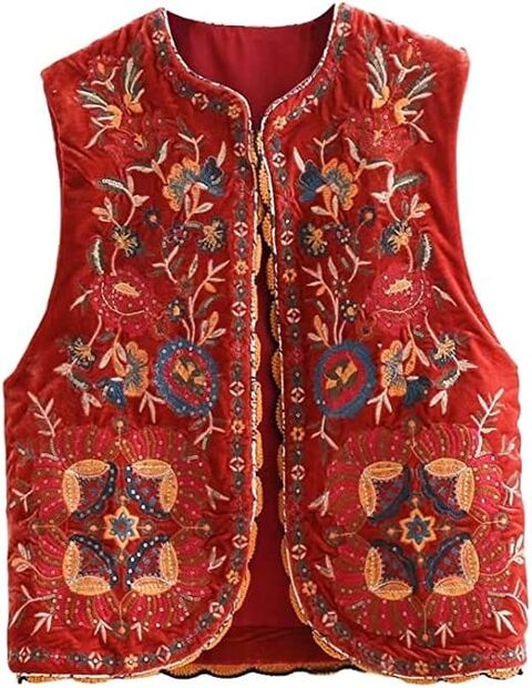 Para quem quiser um estilo mais 'boho-chic' deverá investir num colete bordado de inspiração 'hippie'. Combina na perfeição com saias e vestidos maxi, mas também pode ser usado com calças de ganga de corte flare e shorts. Nos pés, botas texanas ou sandálias rasas. Se seguir as nossas sugestões terá um visual ideal para um festival de música. Fica como sugestão um colete de veludo bordado e com lantejoulas de 46,22 €.