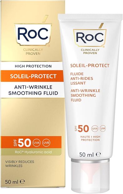 Este protetor com fator 50, da ROC, também é muito escolhido pelo seu efeito anti-rugas, conjugando na perfeição estas duas alíneas que devem andar de mãos dadas. Com uma textura líquida e resistente à água, protege ao mesmo tempo que retarda o envelhecimento.