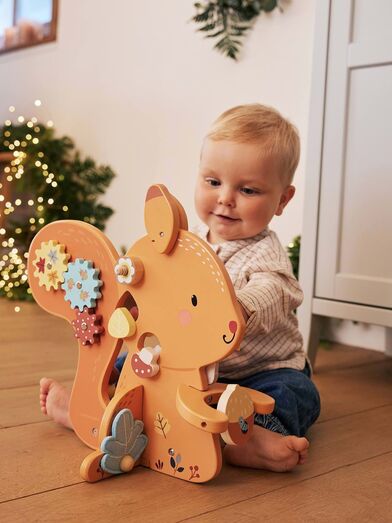 Se aquilo que procura é um presente para um bebé a partir de um ano, este esquilo de madeira é perfeito. Vai despertar a sua habilidade manual, ao mesmo tempo que lhe abre horizontes para novas cores e formas, estimulando a sua imaginação!