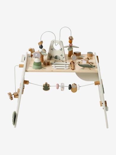Para uma fase em que o bebé já se consegue colocar de pé e quer explorar tudo o que o rodeia, esta mesa de atividades é uma porta aberta para despertar a sua imaginação. Há peças para encaixar, um xilofone para dar música à casa e encantadores animais que vão fazer as suas delícias.
