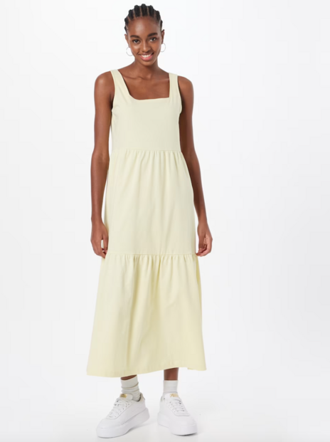 Este modelo em tom amarelo pastel rima com bronzeados de verão. Se já conseguiu o bronzeado perfeite, arrisque neste vestido, que está à venda na About You a partir de menos de 25 euros.