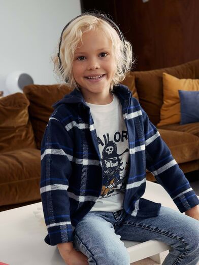 Para ícones de estilo de palmo e meio, esta camisa de flanela com capuz é o mais cool que vai conseguir encontrar nos saldos. Fica bem com jeans e os ténis favoritos e é quentinha o suficiente para deixar o seu filho pronto para enfrentar os dias mais frios.