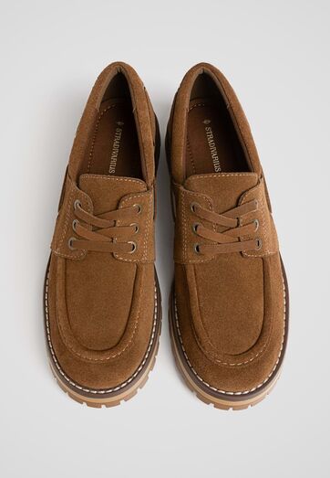 Neste outono, se quiser estar na moda não se vai cansar de andar com esta espécie de pantufas, que deixam os seus pés confortáveis, quentinhos e com estilo ou então regresse à moda dos sapatos de vela com este exemplar em camurça!