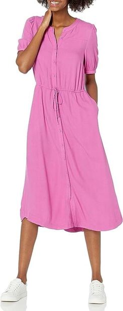 Este vestido de tamanho midi é um básico que assenta na perfeição. Evidencia a cintura, tornando-a mais fina, e tem um cair fluido que não marca as áreas problemáticas. Conjugado com ténis, cria um look jovem e muito 'Barbie world'.