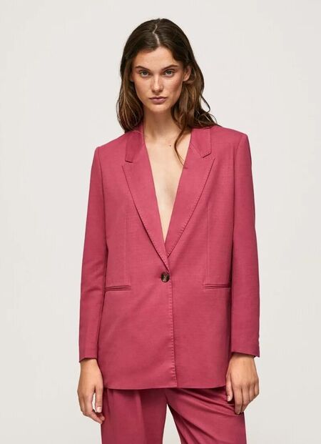 Um blazer é sempre uma peça que vale a pena ter no guarda-roupa e que a vai deixar pronta para qualquer ocasião. Este em rosa velho, da Pepe Jeans, está com 50 por cento de desconto e faz um conjunto super-elegante com calças brancas.