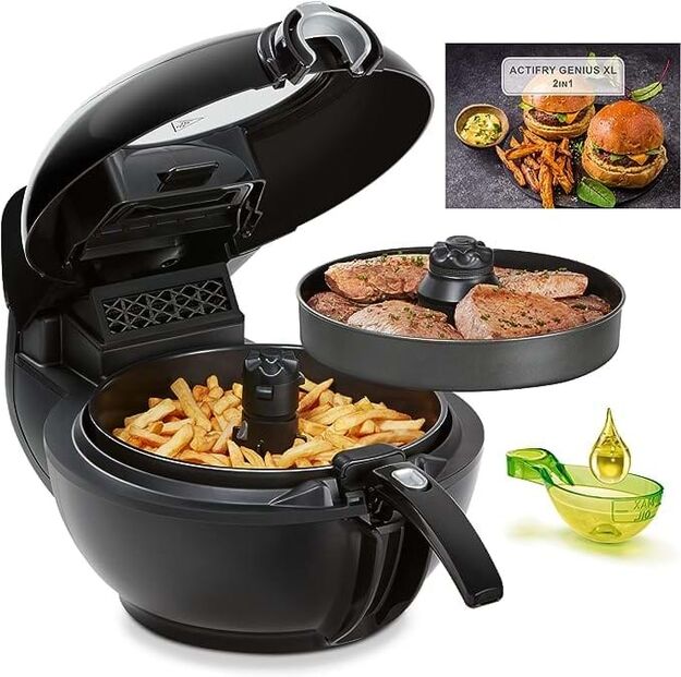 Se quer embarcar totalmente nesta aventura das fritadeiras saudáveis, este modelo da Tefal eleva este mundo a uma outra dimensão. Com dois recipientes diferentes, permite-lhe confecionar, por exemplo, umas deliciosas batatas fritas sem óleo, ao mesmo tempo que frita uns saborosos hamburgueres. Graças à sua tecnologia inovadora, consegue programar diferentes opções para cada um dos tabuleiros, adaptando-os a diferentes alimentos e texturas.