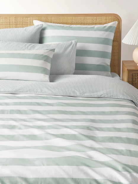 Num quarto, mudar a capa de edredão é suficiente para criar a sensação de divisão renovada. As riscas são sempre uma opção que não sai de moda.