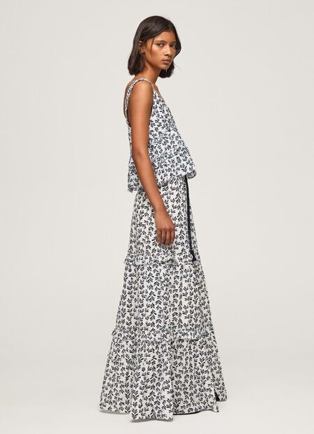 As saias compridas e fluidas tornam qualquer look mais elegante. Encontrámos esta estampada na Pepe Jeans com 50 por cento de desconto e que ainda pode conjugar com o top a condizer.