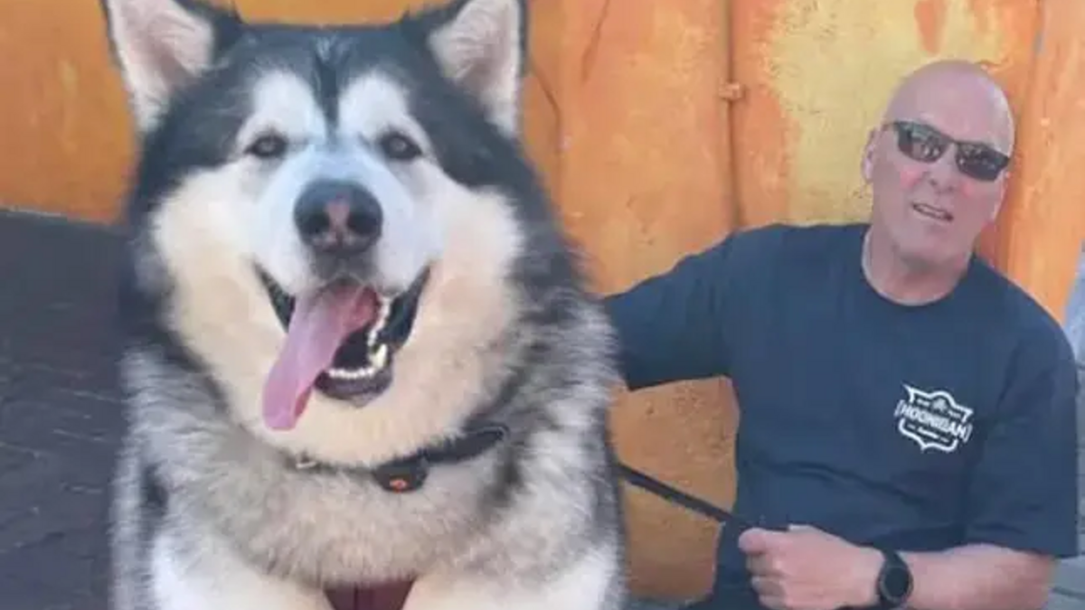 Quando Amy Sharp escolheu o seu filhote de malamute-do-Alasca, nada indicava que ele se tornaria uma celebridade local. Cinco anos depois, Mal pesa 82 quilos e chama à atenção por onde passa.