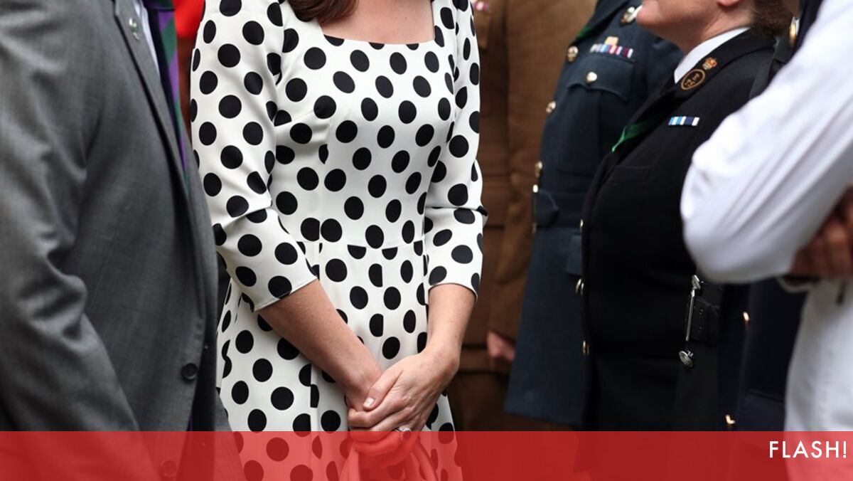 Kate usou um elegante vestido de verão às bolinhas de assinatura Dolce & Gabanna que custa 1880 euros (veja todas as imagens, em cima).